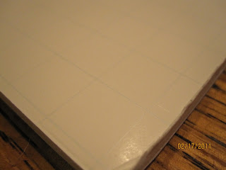 I used the second foam board as my guide and laid the painters tape making sure they lined up with the grid lines. They were not perfectly spaced, the main thing is to just get them totally straight. The grid lines helped tremendously!!
